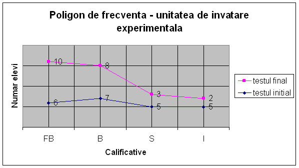 In etapa initiala, de constatare a nivelului de cunostinte al elevilor la cele doua discipline rezultatele au indicat nivel de pregatire asemanator, colectivul fiind omogen dinacest punct de vedere.