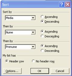 descrescator si daca avem antet la tabel sau nu.