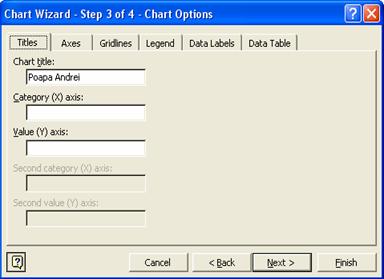 alegem titlul graficului si denumirile axei X si a axei Y;