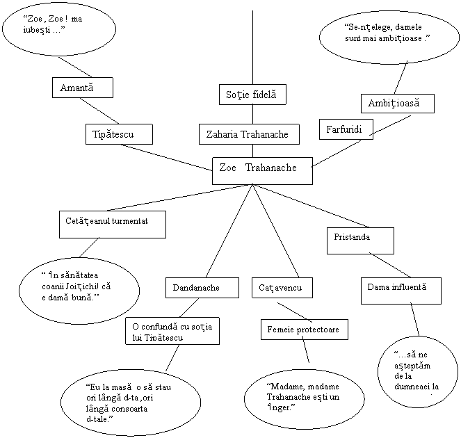 Grupa numarul 2 are de caracterizat personajul Zoe Trahanache urmarind modul in care apare reflectat in viziunea personajelor cu care intra in contact. Metoda folosita este brainstorming-ul. Elevii acestei grupe vor desena un " soare " pe ale carui raze vor scrie trasaturile personajului.