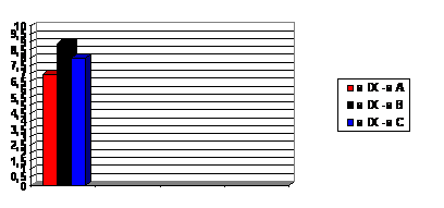 puncte mai mare decat cea a clasei a IX - a A, unde a fost utilizata instruirea traditionala (explicativ - reproductiva, magistrala, logocentrica) si cu 0,91 puncte fata de cea a clasei a IX - a C, unde s - a aplicat instruirea empirio - psiho - sociocentrica (de redescoperire de catre elevi, individual sau in echipa, a noilor concepte biologice) (vezi histograma de mai sus).