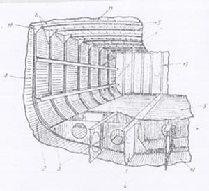 osatura - parte de rezistenta a corpului navei, alcatuita din