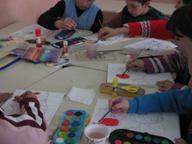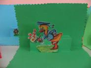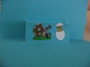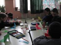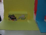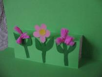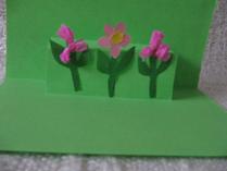 Mijlocul felicitarii se mucheaza spre interior, iar muchia partii decupate se mucheaza in sens invers. Se pot aplica flori, dar si alte imagini: iepurasi, puisori, buburuze etc.