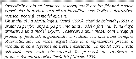 4. Exersarea separata sporeste invatarea prin favorizarea elaborarii de solutii sau clarificand reprezentarile, in timp ce exersarea variabila genereaza scheme de miscare mai eficiente.