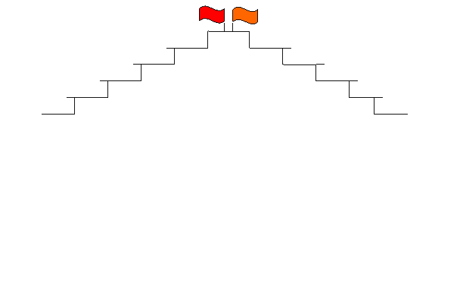Numarul treptelor este in functie de numarul membrilor unei echipe. Pe ultima treapta a celor doua scari se va fixa cate un stegulet, cate un timbru sau un alt premiu.