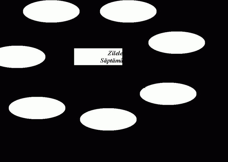 Asezand in cerc zilele saptamanii vor observa ca daca azi e marti si numaram zilele pana martea viitoare, tot o saptamana va trece. Vor colora cu albastru zilele lucratoare, iar cu galben week-end-ul.