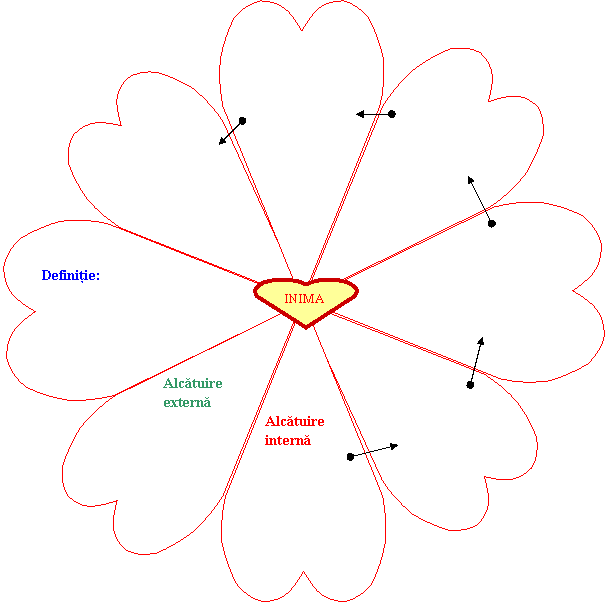 Profesorul va aplica metoda margaretei care va avea ca scop sa atraga si sa antreneze elevii pentru constientizarea importantei inimii in sistemul circulator. Acesta imparte fisa de lucru care va fi completata de elevi pe parcursul dirijarii invatarii. Dupa etapa de sistematizare a alcatuirii inimii profesorul antreneaza elevii intr-un joc interactiv care presupune impartirea clasei in 3 grupe. Fiecare grupa va purta cate un nume corespunzator tipurilor de vase, astfel : Grupa I : Arterele Grupa II : Capilarele Grupa III : Venele. Profesorul costumeaza elevii cu cartoane de identificare. Fiecare grupa isi asuma rolul pe care-l indeplineste in circulatia sangelui. Jocul se va finalize cu schema la tabla ( anexa). |