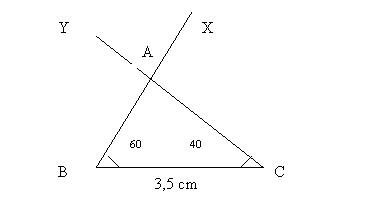 b)construim doua semidrepte [BX si [CY situate de aceeasi parte a dreptei BC, avand originea in B si C, astfel incat sa formeze unghiurile < CBX si < BCY avand masurile de 600 respectiv 400. Varful A al triunghiului este situat la intersectia semidreptelor [BX si [CY