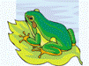 Pe frunzele de pe apa unui lac se odihneau 2 broscute. Inca o broscuta obosita a venit sa se odihneasca.