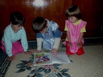 1. Alegerea temei a fost inspirata de exclamatia "Ce carte frumoasa !" a copiilor din grupa la vederea unei carti de povesti aduse de Andrei la camin. (Anexa nr.1) Imediat au venit si intrebarile urmatoare : "Cine face cartea ?"; "Cine o scrie ?" (Anexa nr.3) Intrebarile copiilor mi-au aratat ca doresc sa stie cat mai multe lucruri despre carti si astfel am stabilit sa desfasuram proiectul "Cartea".