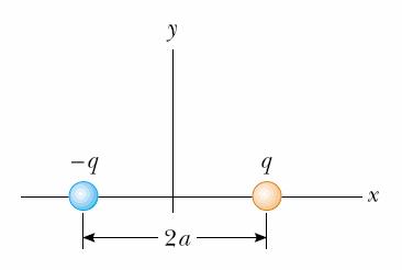 Fie un dipol electric compus din sarcinile + q si - q avand axa orientata de-a lungul axei Ox (vezi Figura). Sarcina + q se afla in punctul de coordonata x = - a, iar sarcina - q, in punctul de coordonata x = + a (a > 0). Sa se deduca expresia modulului intensitatii campului electric rezultant in punctul de coordonata x = d (d > 0, d > a).