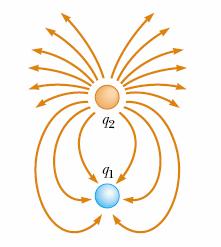 In Figura sunt prezentate liniile campului electric generat de sarcinile punctiforme q1 si q2 situate la mica distanta una de alta.