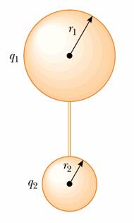 O sfera metalica de raza R se incarca la un potential + V. O alta sfera avand raza dubla fata de prima se incarca la un potential - V. Sferele se pun in contact printr-un fir conductor. Sa se exprime potentialul sferei de raza R si sarcina electrica cu care va fi aceasta incarcata.