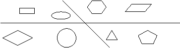 Incercuieste figurile geometrice asezate sub linia orizontala in stanga liniei oblice
