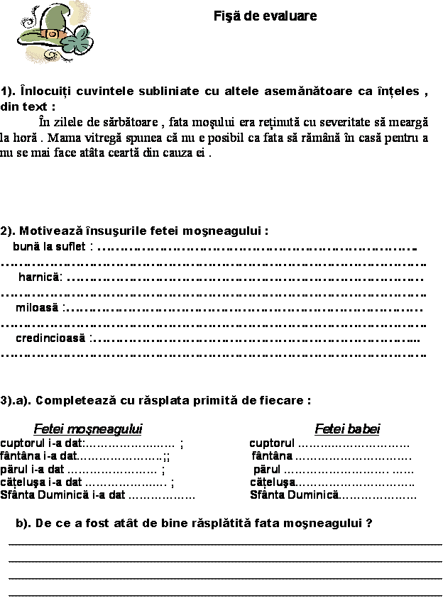 O : Sa citeasca corect , fluent , constient si expresiv textul "Fata babei si fata mosneagului