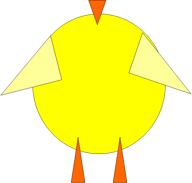 Prezinta plansa model realizata din hartie glasata. Analizeaza modelul indrumand elevii sa observe ca acesta infatiseaza un pui care tocmai a iesit din ou, realizat din figuri geometrice. Elevii primesc sarcina sa recunoasca figurile geometrice care alcatuiesc puiul. |