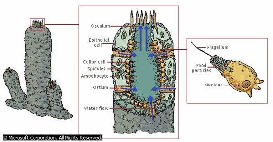 O4-sa descrie modul de hranire, respiratie si excretia spongierilor