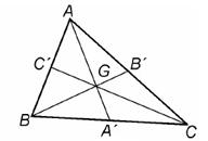 Asadar exista trei mediane [AA'], [BB ], [CC']. Teorema. Cele trei mediane ale unui triunghi sunt concurente (adica trec prin acelasi punct). Punctul lor comun se numeste centrul de greutate (sau baricentrul) triunghiului (notat cu G).