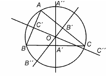 Teorema. Cele trei mediatoare ale unui triunghi sunt concurente. Punctul lor comun se numeste centrul cercului circumscris triunghiului.