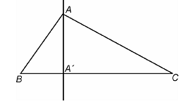 In figura, centrul cercului circumscris este O. Denumirea de centru al cercului circumscris triunghiului ABC este explicata de figura. Anume, O este centrul unicului cerc care trece prin punctele A, B. C. Remarca. Daca Δ ABC este dreptunghic in A, atunci centrul cercului circumscris Δ ABC coincide cu mijlocul ipotenuzei [BC]. 4. Inaltimea Definitie. Se numeste inaltime a unui triunghi o dreapta care trece printr-un varf al triunghiului si este perpendiculara pe latura opusa. De exemplu, inaltimea care trece prin A se numeste inaltimea din A a triunghiului ABC. Am notat-o cu AA' (aici, A' este intersectia inaltimii din A cu latura opusa, BC).
