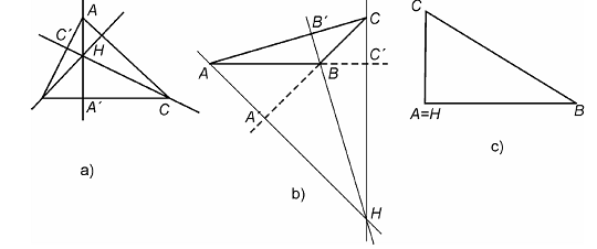 A; b) H este interior triunghiului; c) H = B; d) [AB] |