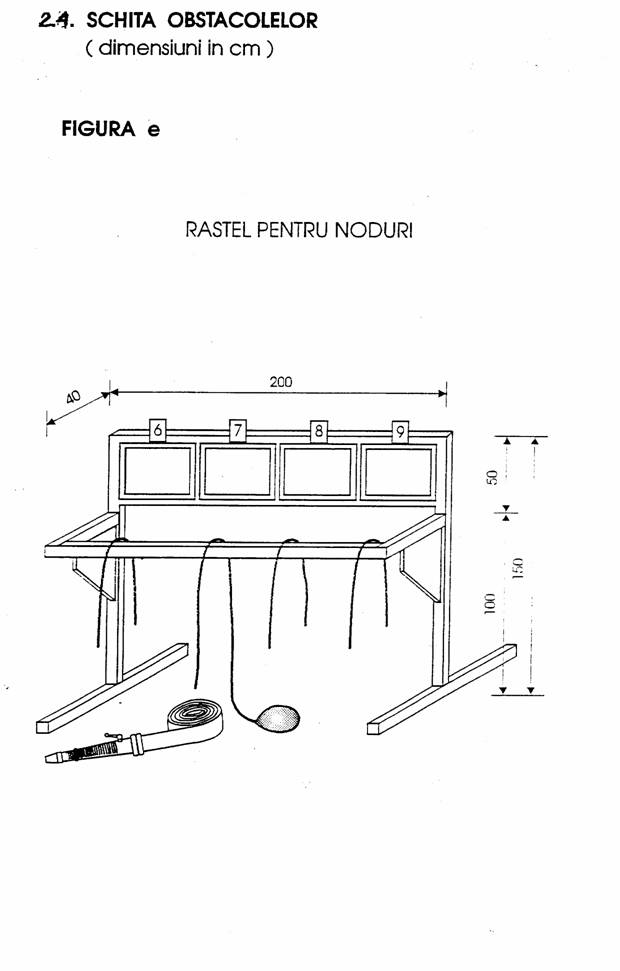 Tronsonul 5: concurentul nr. 5 trebuie sa treaca pe sub obstacol fara sa darame stacheta (vezi schita). Daca stacheta cade, el poate sa o repuna pe suport si sa reia proba.