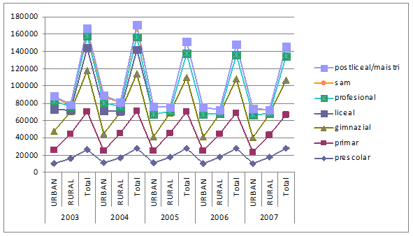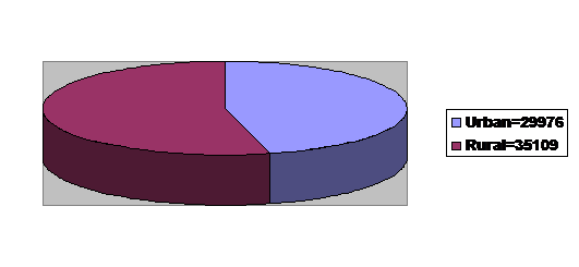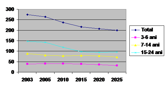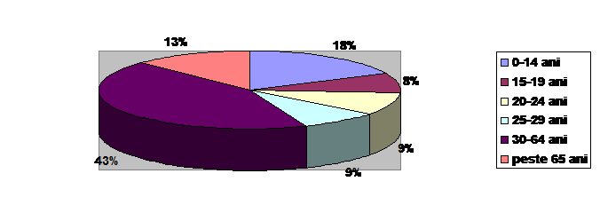 Din figurile 2.1.2 si 2.1.3 se poate deduce ca pe cele 2 grupe de varsta analizate predomina populatia in mediul rural, mai accentuat la grupa de varsta 0-14 ani, 64,07% fata de 51,43% la grupa 15-19 ani. Aceasta tendinta va trebui sa influenteze invatamantul in sensul deplasarii accentului pe invatamantul pe zone, care sa permita accesul cat mai facil a populatiei scolare din mediul rural.