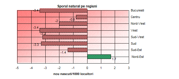 Pana in anul 2002 (inclusiv), regiunea Nord-Est a fost singura regiune din Romania care a inregistrat valori pozitive ale sporului natural. Dupa aceasta data, sporul natural este negativ, urmand tendinta din planul national. Cu toate acestea la nivelul judetului Iasi incepand cu 2004 sporul natural este pozitiv in 2007 prezentandu-se astfel: