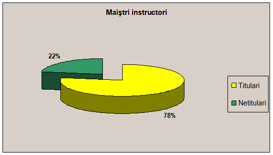 Dotarile spatiilor construite sunt constituite din echipamente, utilaje, aparate pentru instruirea teoretica si practica, starea lor fizica si morala fiind satisfacatoare.