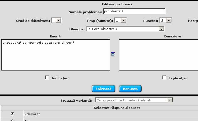 salvez problema si ma intorc la creare problema dar aleg alt tip de item specific si alte lucruri ca:pozitie problema in test,punctaj,obiective.