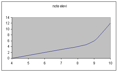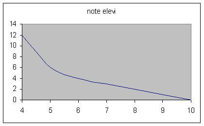 Acum selectam celulele de la A1 la B3. Ducem sageata mouse-ului sus in bara de butoane si dam un clic pe butonul de diagrama. Atunci va aparea o fereastra intitulata Chart Wizard - Step 1 of 4 - Chart Type, fereastra din care trebuie sa alegem tipul de grafic. Pentru exemplu nostru, cel mai indicat tip de grafic este cel de tipul XY(Scatter). In partea dreapta vom avea exemple de grafice de tipul XY. Vom alege pe cel cu linii curbe (pe randul al doilea in dreapta). Apoi dam un clic pe butonul Next din partea de jos a ferestrei sau putem apasa tasta Enter. A aparut fereastra Chart Wizard - Step 2 of 4 - Chart source Data, adica fereastra in care se indica sursa de unde se vor lua valorile pentru grafic si forma graficului. Daca am facut selectia bine la inceput, aici nu ar trebui sa mai scriem nimic. Dar pentru a verifica daca datele sunt bine selectate dam un clic pe partea de sus a ferestrei acolo unde scrie Series. Fereastra o sa se modifice in partea din mijloc (cea de sub grafic). In stanga acestei parti ar trebui sa avem scris denumirea Nr.elevi, iar in dreapta in dreptul lui Name vom avea scris =Sheet1!$B$1, in dreptul lui X Values vom avea scris =Sheet1!$A$2:$A$8, iar in dreptul lui Y Values vom avea scris =Sheet1!$B$2:$B$8. Apoi dam un clic pe butonul Next din partea de jos a ferestrei sau putem apasa tasta Enter. Avem acum fereastra Chart Wizard - Step 3 of 4 - Chart Options, adica acea etapa in care stabilim optiunile de scriere pentru grafic. In partea de sus avem mai multe butoane:Titles - daca dorim, putem pune un titlu graficului si putem scrie ceva in dreptul axelor Ox si Oy. La titlu vom scrie Rezultate test, la axa Ox vom scrie nr.elevi, iar la axa Oy vom scrie Note.Axes - stabileste daca dorim sa avem numerotate axele. Implicit ele vor fi numerotate. Gridlines - stabilim daca dorim linii suplimentare in dreptul gradatiilor axelor. Deobicei liniile stabilite implicit sunt suficiente. Legend - se refera la legenda graficului, daca o dorim si unde sa fie plasata. Se foloseste cand avem mai multe serii de numere de reprezentat. In acest caz, avand doar o singura serie vom da un clic pe casuta de langa optiunea Show legend pana aceasta va ramane libera. Data labels - daca dorim ca pe grafic sa apara valorile de la fiecare nota, apasam pe optiunea Show value. Daca dorim sa apara nr de elevi apasam pe optiunea Show labels. In cazul acesta aleg optiunea None, adica sa nu scrie nimic pe grafic. Apoi dam un clic pe butonul Next din partea de jos a ferestrei sau putem apasa tasta Enter. Ultima fereastra Chart Wizard - Step 4 of 4 - Chart Location este cea in care stabilim unde sa apara graficul:As new sheet adica pe o foaie separata. As object in adica pe aceeasi foaie cu tabelul. Aleg optiunea pentru o foaie separata si obtin urmatorul grafic: