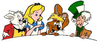 Acesta se sperie, fugi si scapa din mina un evantai. Alice lua evantaiul si incepu sa-si faca vint, dar, cu fiecare miscare a mainii, se facea din nou tot mai mica. Alice sa facu atat de maruntica incat a fost luata de apa izvorasului pe care l-a format ea din lacrimi. Dusa de valuri, ea a ajuns afara din incapere. Langa ea plutea si un soricel, pe care l-a intrebat: '-Cum as putea iesi de aici?' Dar soricelul nu i-a raspuns. Atunci Alice s-a prins de coada lui si s-a tras afara la mal. N-a stat mult sa-si traga sufletul cind a zarit o omida uriasa fumind care a intrebat-o '-Cine esti tu?' '-Nici eu nu mai stiu, ba sint mare, ba sint mica', ii raspunse Alice. '-O, aceasta este un lucru obisnuit la noi. Priveste, daca musti din partea aceasta a ciupercii, te faci mica, iar daca musti din partea cealalta, te faci mai mare', ii spuse omida si disparu in fum. Alice a muscat o bucata din ciuperca si se facu mai mare. Apoi a pornit sa colinde aceasta ciudata imparatie. La umbra unui copac era intinsa o masa, la care stateau Nebunul cu palarie si Nebunul lui Aprilie, care-si luau gustarea . Langa ei dormea o marmota. Alice a intrat in vorba cu ei , bucuroasa ca are cu cine povesti. '-Ia loc la masa si bea un ceai cu noi!' au indemnat-o mesenii.' -Dar ce sarbatoriti? ' intreba Alice. '-Noi sarbatorim ziua de ne-nastere a lui Alice' , ii raspunde Nebunul cu palarie. ' -De ce ziua de ne-nastere?' intreba mirata fata.' -Pai, ziua de nastere se sarbatoreste doar o data pe an, pe cind ziua de ne-nastere o putem sarbatori in fiecare zi '. Alice se sperie de aceste creaturi ciudate si pleca mai departe. Pe ramura unui copac zari o pisica vargata, cu care intra in vorba. '-Buna ziua! ' ii spuse pisica zimbind.' -Buna ziua' ii raspunse Alice.' Caut o gradina frumoasa, nu cumva stii pe unde o pot gasi ? ' -Intra prin usa' ii zise pisica.
