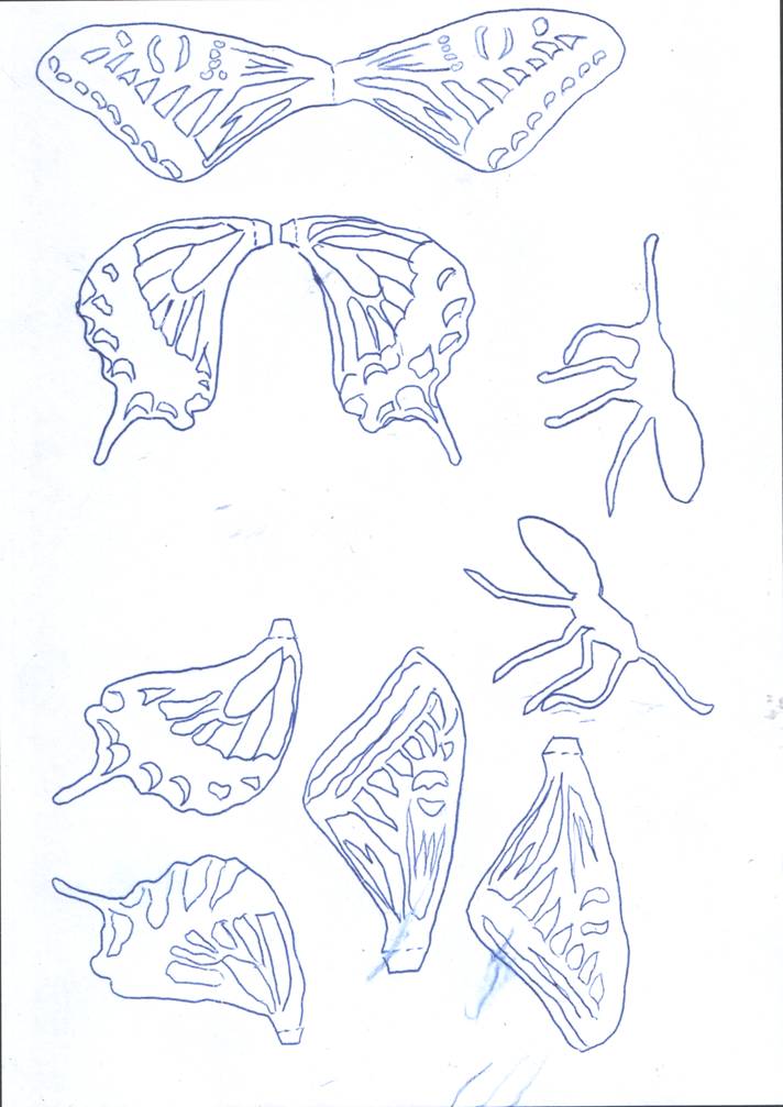 -aripile fluturelui se lipesc fata in fata 2 cate 2;
