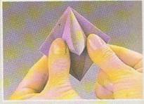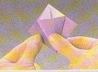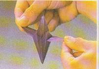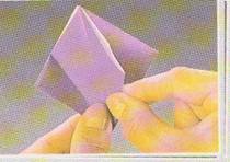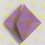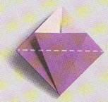 9.Se preseaza pliurile.Triunghiul mic se pliaza in sus ,de-a lungul liniei mijlocii.