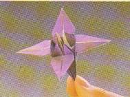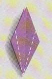 8.Colturile figurii de zmeu se preseaza in interior pe linia mijlocie,astfel incat laturile hartiei sa se intalneasca exact pe linia mijlocie.