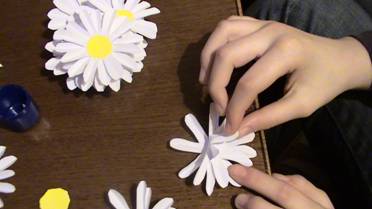 2. Se decupeaza florile, se lipesc doua cate doua si se aplica pe fasile taiate.