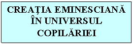 Copilaria cu jocurile, bucuriile si suferintele ei a inspirat prin sensibilitate arta si creatia poetilor, care s-au aplecat cu intelegere si dragoste, asupra unui univers cu bogate rezonante afective si morale, in planul expresiei artistice. In tezaurul literaturii pentru copii au patruns, prin paginile publicatiilor de specialitate, un mare numar de poezii valoroase ale marelui poet Mihai Eminescu.