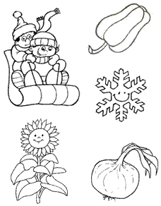 *Ce reprezinta fiecare desen? Coloreaza-le pe cele specifice toamnei, incercuieste desenele care apartin iernii.