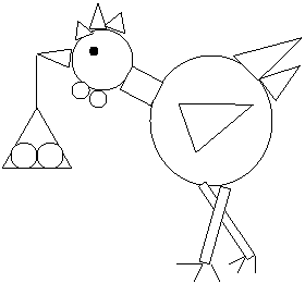 Coloreaza triunghiurile cu rosu, cercurile cu galben, dreptunghiurile cu portocaliu. Din ce poveste este personajul?