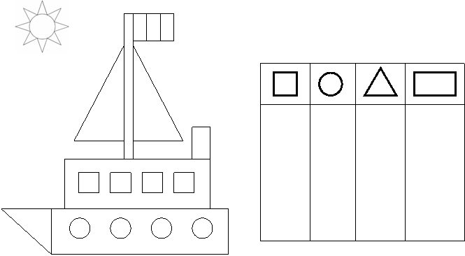 5. Noteaza in tabel semnul X pentru fiecare figura geometrica din tablou: