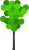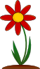 Deseneaza flori rosii in fata pomului si flori galbene in spatele pomului.
