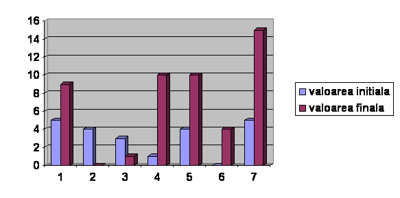 In urma analizei efectuate pe baza observatiilor, urmarind caseta video de la inceputul programului si la sfarsitul acesteia , s-a obtinut urmatorul tabel.