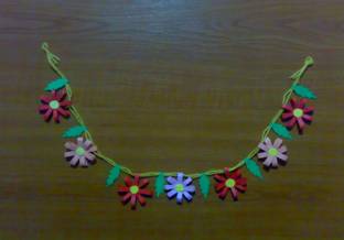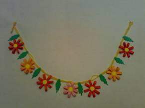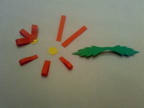 Petalele florilor se realizeaza din fasii de hartie cartonata lipite la capete, dupa care acestea se lipesc intre doua buline galbene, obtinandu-se o floricica.