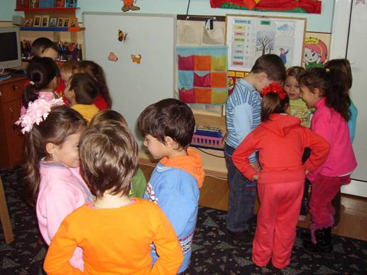 Activitatea de grup - creeaza coeziunea grupului, accentueaza cooperarea, exprimarea libera, comunicarea, invatarea, iar copiii au posibilitatea sa comunice noutatile sau experientele personale deosebite( ce i s-a intamplat ieri, la ce a visat, ori ce a aflat nou, ce experiente de cunoastere ori emotionale a avut, ce tema le-a propus educatoarea, orice este posibil).