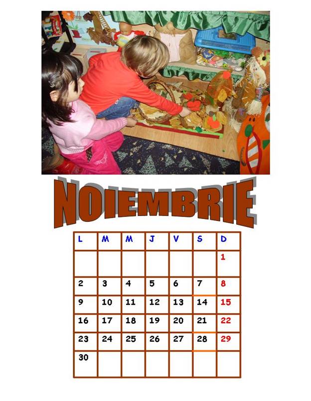 Completarea calendarului: Este o zi frumoasa de.....A inceput luna., este frig, iar frunzele copacilor incep sa ..una cate una formand un de frunze uscate.