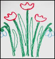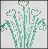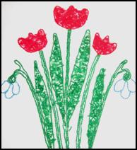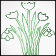 Pe cartonul xerox color se deseneaza cu creionul un buchet de lalele si ghiocei;