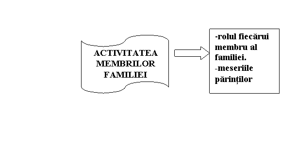 CE NU STIM SI VREM SA AFLAM? -rolul fiecarui membru al familiei; -responsabilitati in cadrul familiei; -reguli de comportare in familie. |