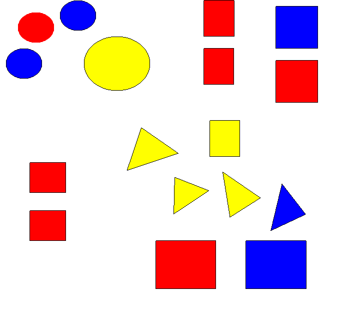 Formeaza multimea figurilor geometrice de aceeasi forma, marime si culoare