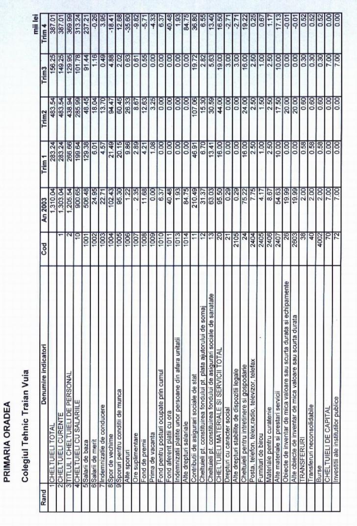 ANALIZA STATISTICA A BUGETULUI DE CHELTUIELI ANUALE LA COLEGIUL TEHNIC „TRAIAN VUIA” ORADEA IN PERIOADA 2003-2006