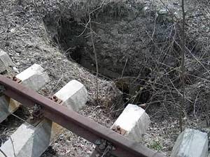 Foto 1 Alunecare de teren pe amplasamentul linei de cale ferata |